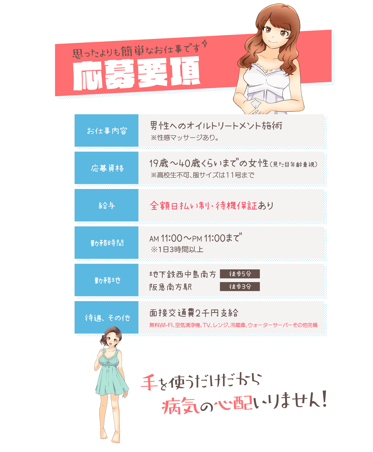 又、前立腺の施術については、お仕事しながら少しづつ覚えていただける事も可能です。お客様全員が前立腺の施術を希望している訳ではないので前立腺の施術については気にしなくても問題ありません。当店のセラピストの大半が前立腺の施術は未経験からのスタートでした。
