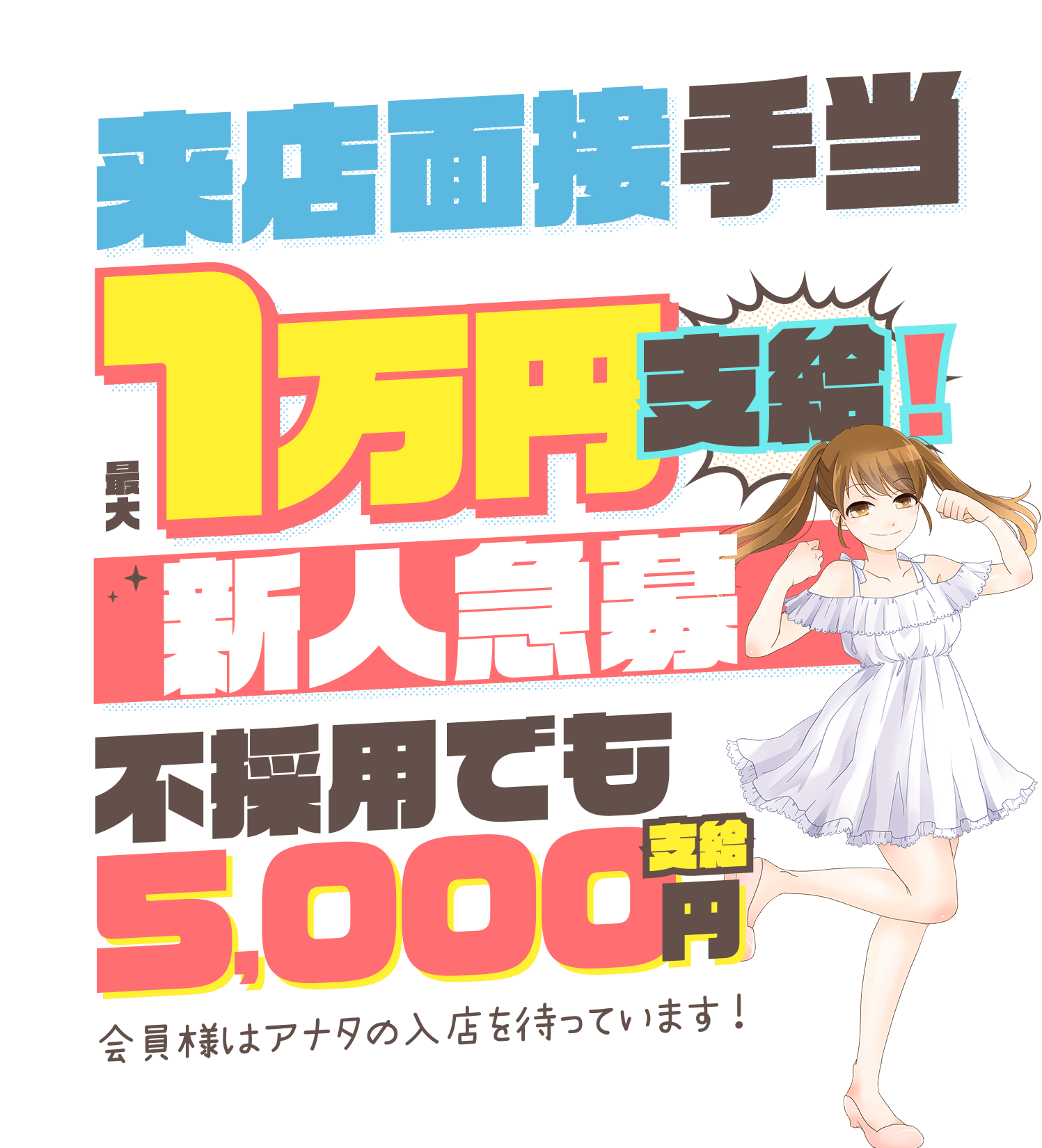 当店の女の子の半数以上がお昼間のお仕事をもっていますので、月に何回かの出勤や、またお仕事帰りで1日3時間程度の出勤であっても1万~2万以上稼いで帰る女の子もいます。そして、当日の緊急出勤もできますので本当に空いているお日やお時間の出勤で問題ありません。